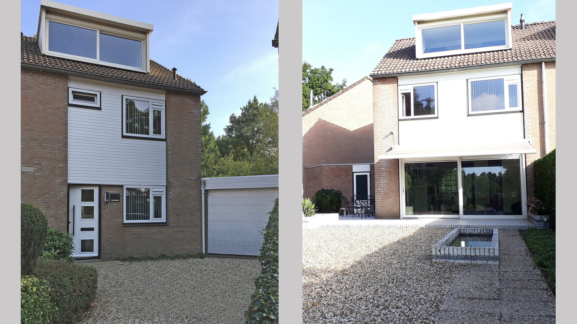 Bij een standaard rijtjeswoning heb ik een bestaande woonkamer en keuken een modern interieur gegeven en via een brede pui zicht op een door mij ontworpen tuin gegeven. Het nieuwe interieur kent een ingetogen kleur- en materiaalgebruik; het tuinontwerp een ingetogen uitstraling met diverse zitplekken. De relatief kleine tuin (350 m²) is geheel onderhoudsvrij ingericht en voorzien van verlichting en bevloeiing.